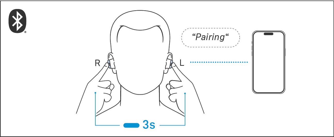 当您在初次充电后首次使用耳机时,它将自动切换到蓝牙配对模式。如果耳机未与蓝牙设备配对(配对清单为空),那么配对模式会一直保持激活状态。